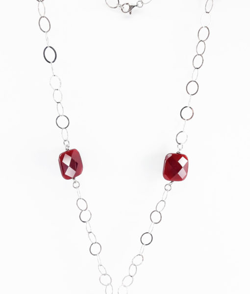 Χειροποίητο κολιέ με αλυσίδα από ασήμι 925˚ και πέτρες κορνεόλη (μήκος 85εκ.)