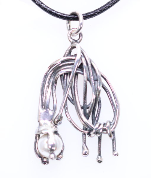 Χειροποίητο μενταγιόν από ασήμι 925˚ μοντέρνο ασύμετρο, από σύρμα με μαργαριτάρι