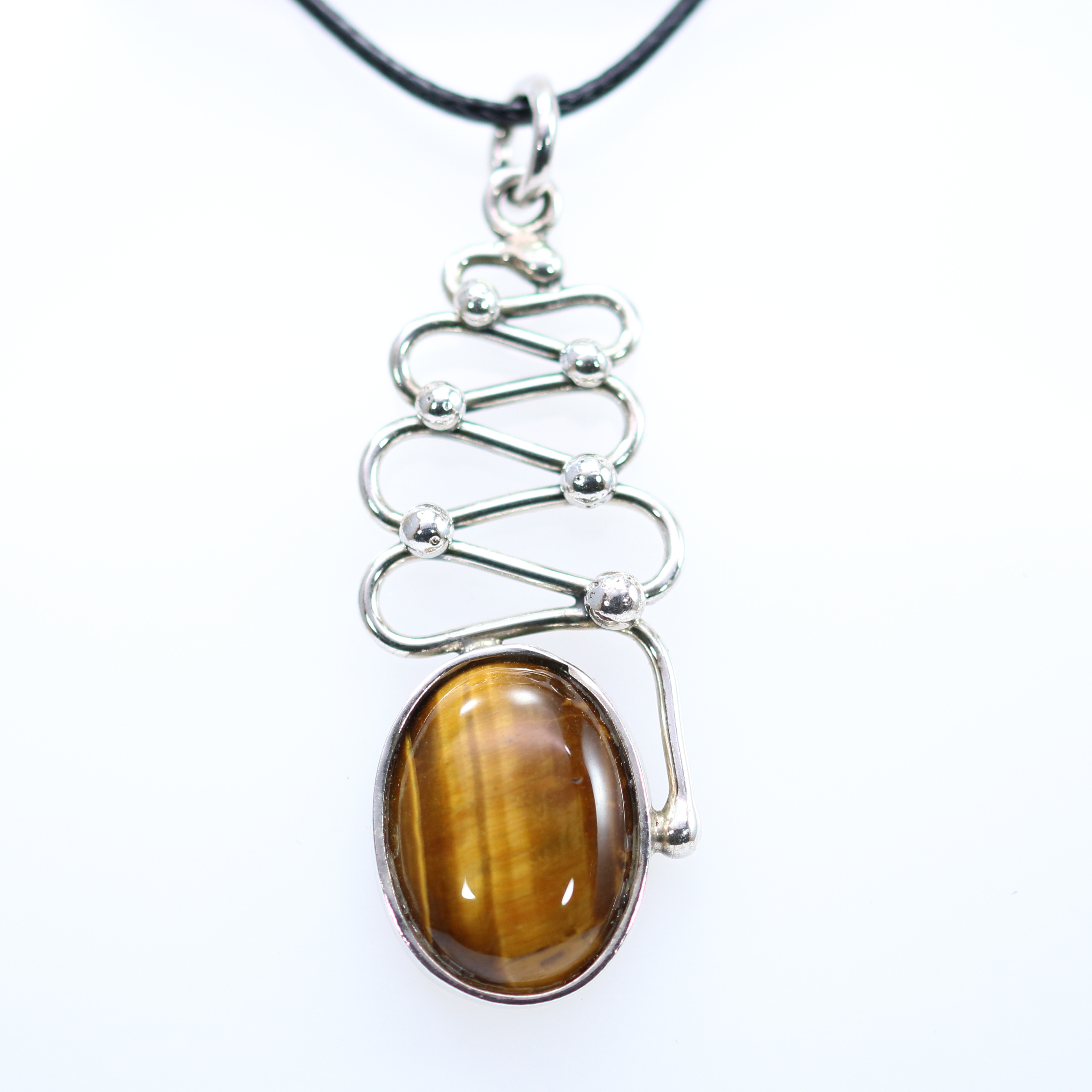 Χειροποίητο μενταγιόν από ασήμι 925˚ ασύμμετρο, με πέτρα μάτι της τίγρης (μήκος 6εκ.)