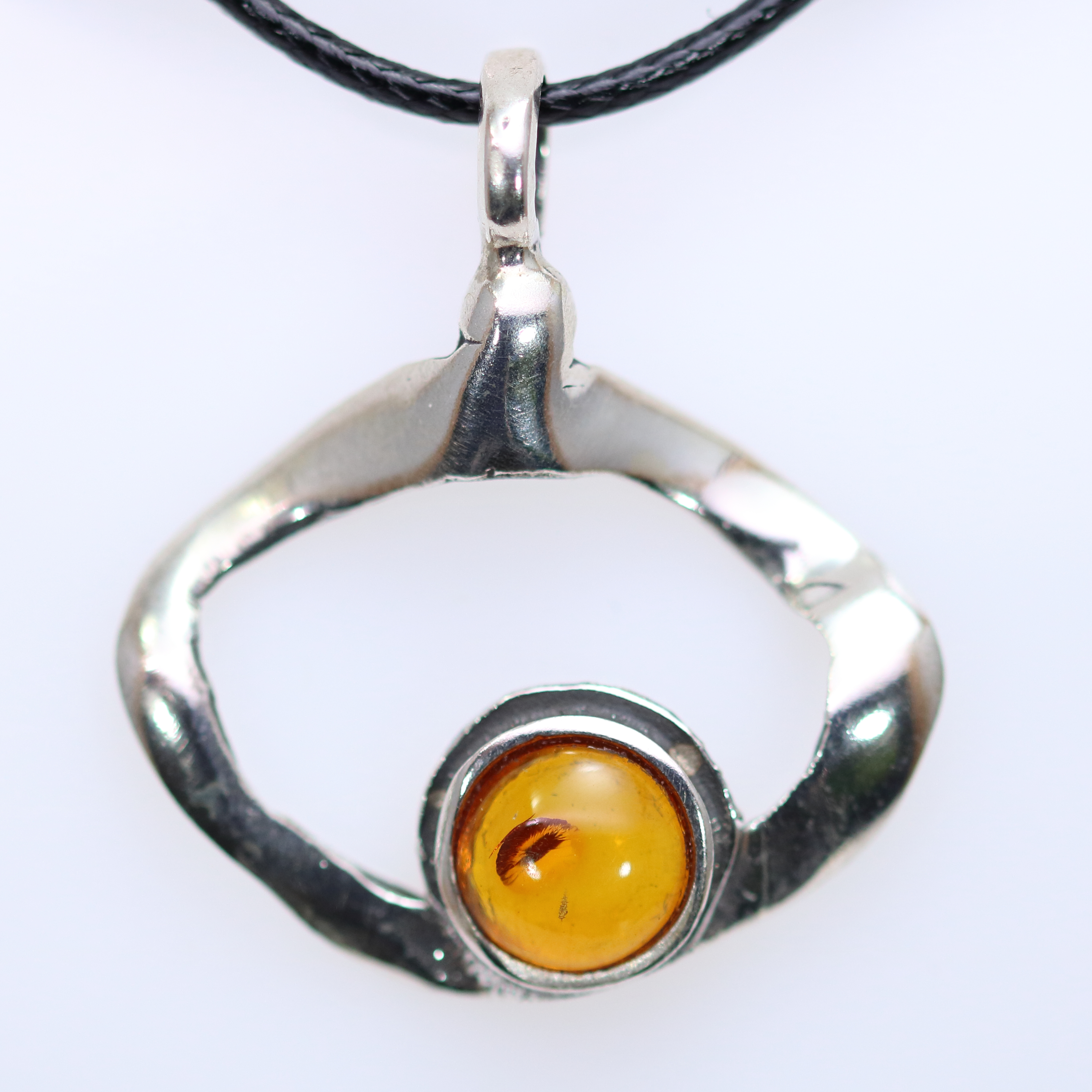 Χειροποίητο μενταγιόν από ασήμι 925˚ με πέτρα κεχριμπάρι