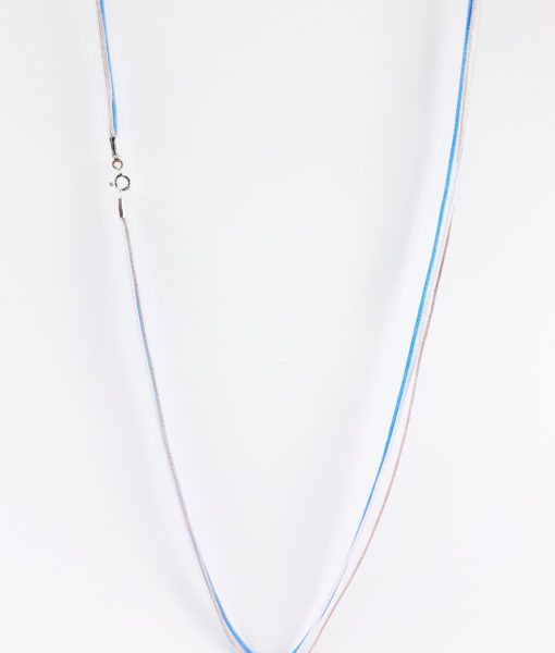 Τριπλό κορδόνι σομόν-σιέλ-γκρι ανοιχτό με κούμπωμα από ασήμι 925˚ (μήκος 85εκ.)